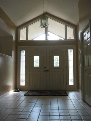 - Double door front entry with leaded glass surround